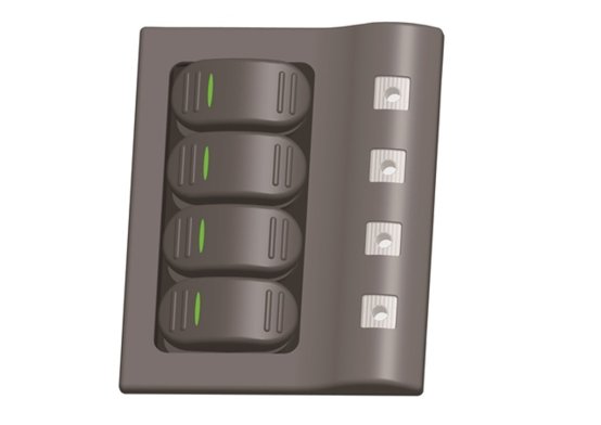 - Switches: Waterproof switches with LED indicators x 4